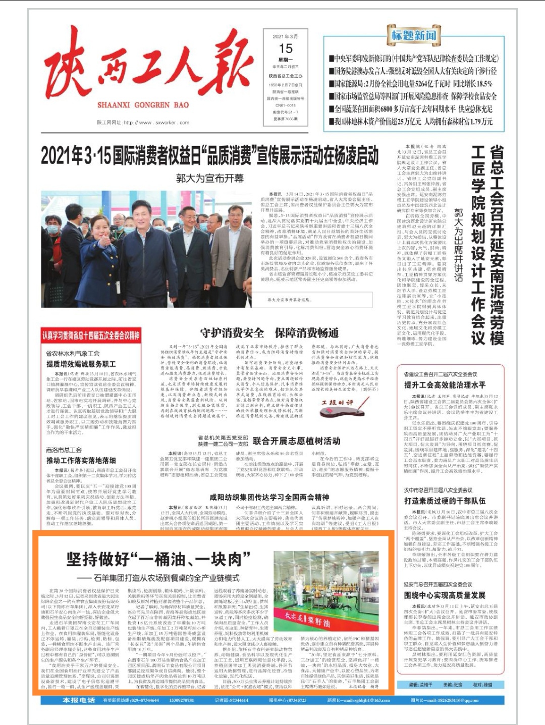 第39個國際消費者權(quán)益保護日前夕,陜西日報、西部網(wǎng)、陜西...